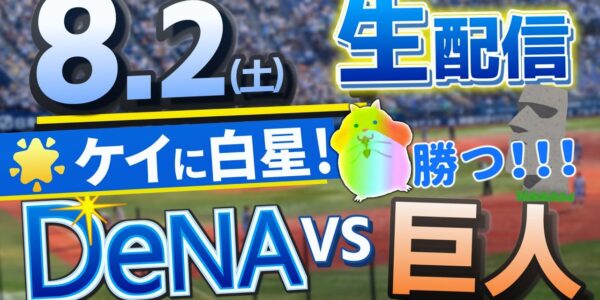 【#プロ野球ライブ 】🌟#横浜DeNAベイスターズ vs巨人のプロ野球ライブ8/2(土) 横浜ファン集合!! 【#プロ野球速報 】【#一球速報 】【プロ野球live】