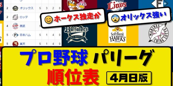 【最新】プロ野球パ・リーグ順位表 4月1日版|楽天1-6ソフ|西武0-4オリ|ハム2-4ロッテ|【まとめ・なんJ・2ch】
