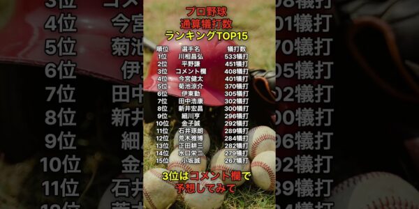 プロ野球 歴代通算記録ランキングです。 本動画は公式記録をもとに作成しています。…