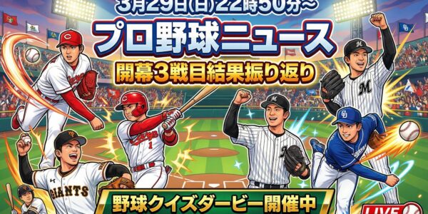 3月29日 プロ野球ニュース& 大谷翔平【巨人 vs 阪神】: 阪神が総力戦を制して2連勝でカード勝ち越し 森下の1号など終盤の猛攻で12得点