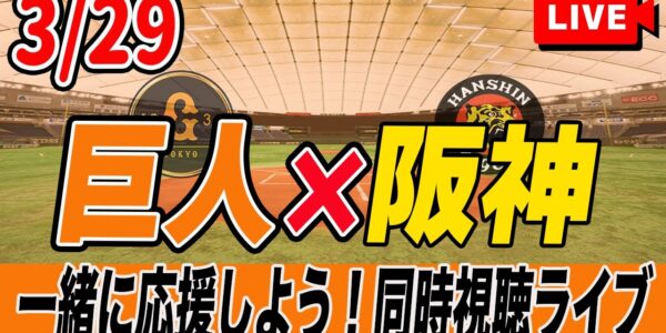 【巨人ライブ】3/29 読売ジャイアンツ VS 阪神タイガース を実況同時視聴ライブ配信!開幕3戦目! 巨人 プロ野球 公式戦 ライブ