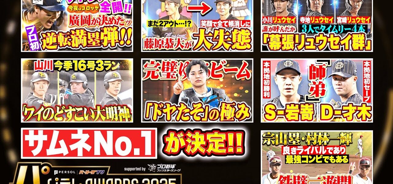 いよいよ今週末12/7に開催のパテレアワード2025 supported by プロ野球 ファンスターズリーグ。イベントに先駆けて動画を一部先行公開いたします!今回はイベント当日に紹介はないもののパテレ的には欠かせない賞、「ベストサムネ大賞」を紹介!