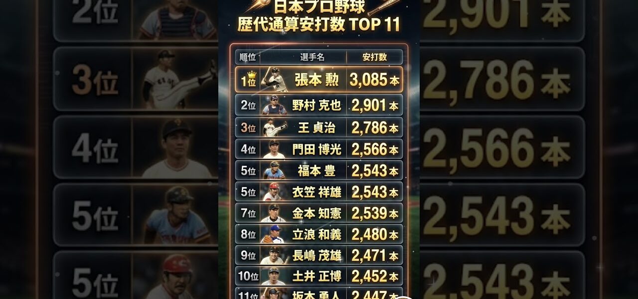 #シニア情報 #順位 #ランキング #プロ野球 #NPB #安打製造機 #張本勲 #野村克也 #王貞治 #長嶋茂雄 #坂本勇人 #野球の思い出 #昭和のスター