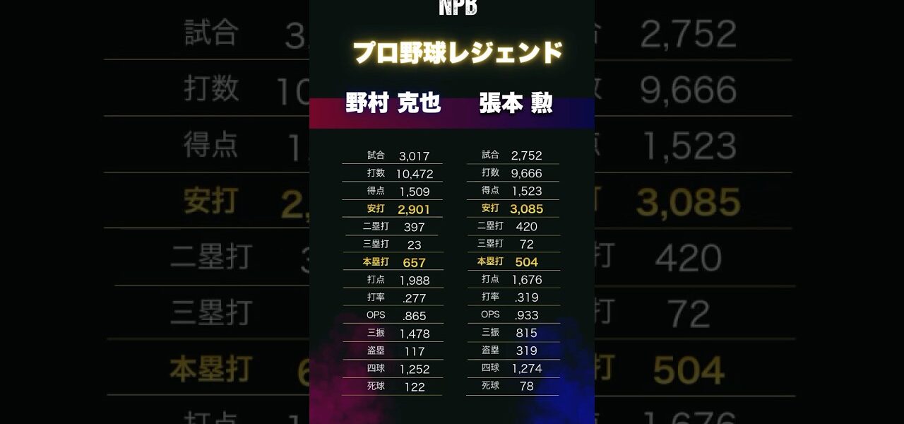 これがプロ野球界のレジェンド通算成績!野村克也&張本勲