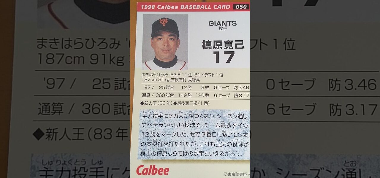 1998プロ野球チップス【槙原寛己(巨人)】