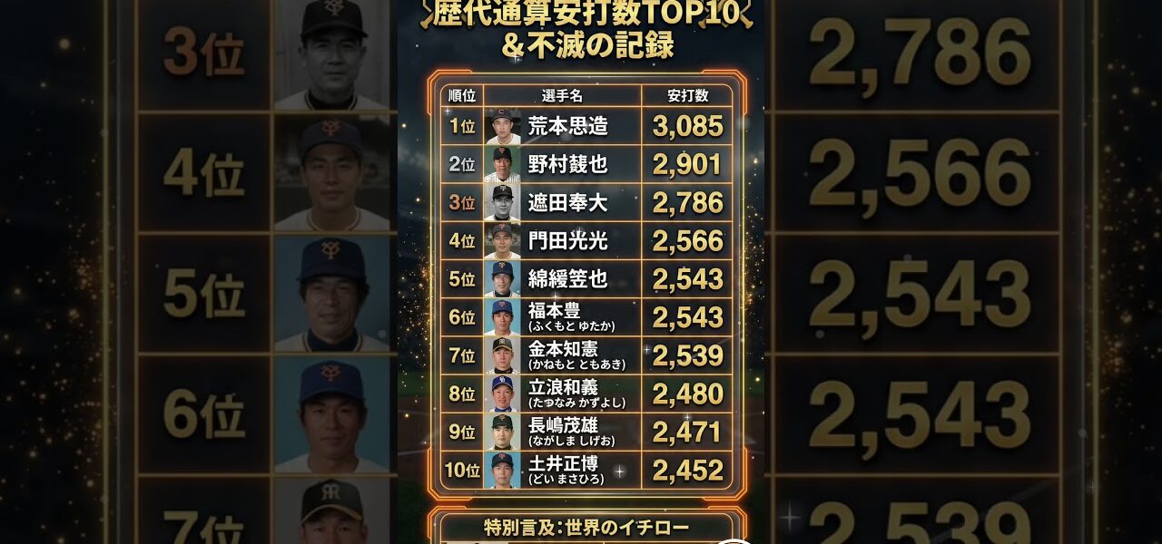 今回は、日本球界の歴史を築き上げた「歴代安打数」のトップ10を振り返ります。イチロー選手の驚異的な記録も必見です。