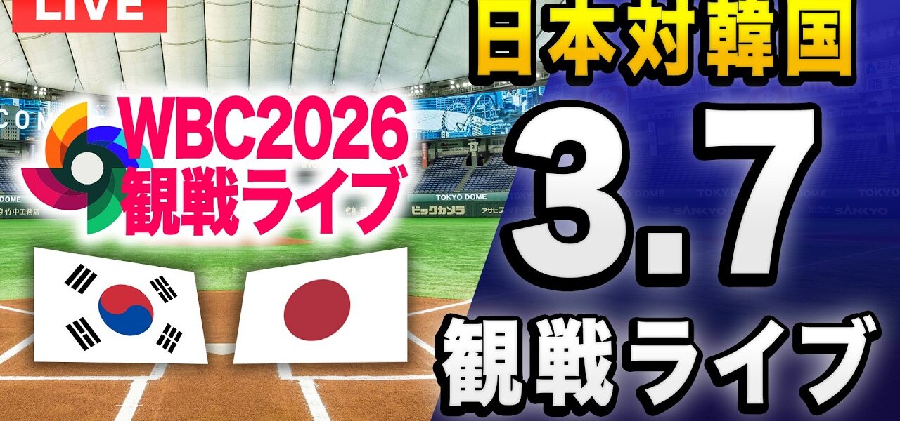 【侍ジャパン WBC2026🔴】3/7 侍ジャパン日本代表 対 韓国代表のWBC1次ラウンド プールCを一緒に観戦するライブ配信です、本配信に試合のLIVE中継映像はございませんので予めご了承ください。