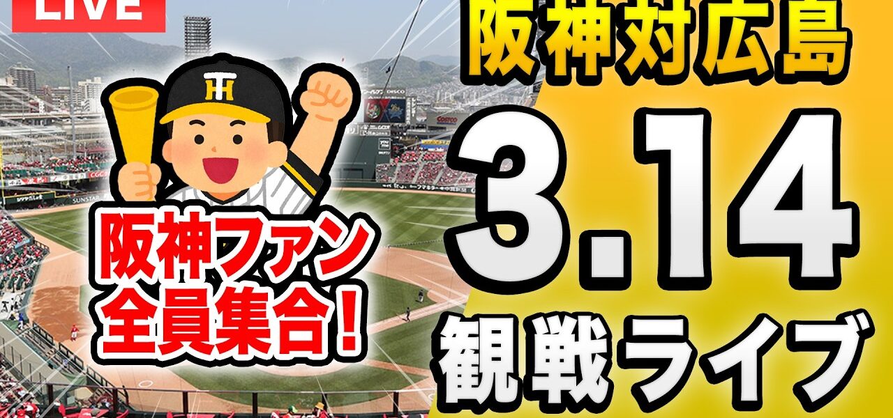 【プロ野球 阪神オープン戦2026】3/14 阪神タイガース 対 広島東洋カープの オープン戦を一緒に観戦するライブ配信です、本配信に試合のLIVE中継映像はございませんので予めご了承ください。