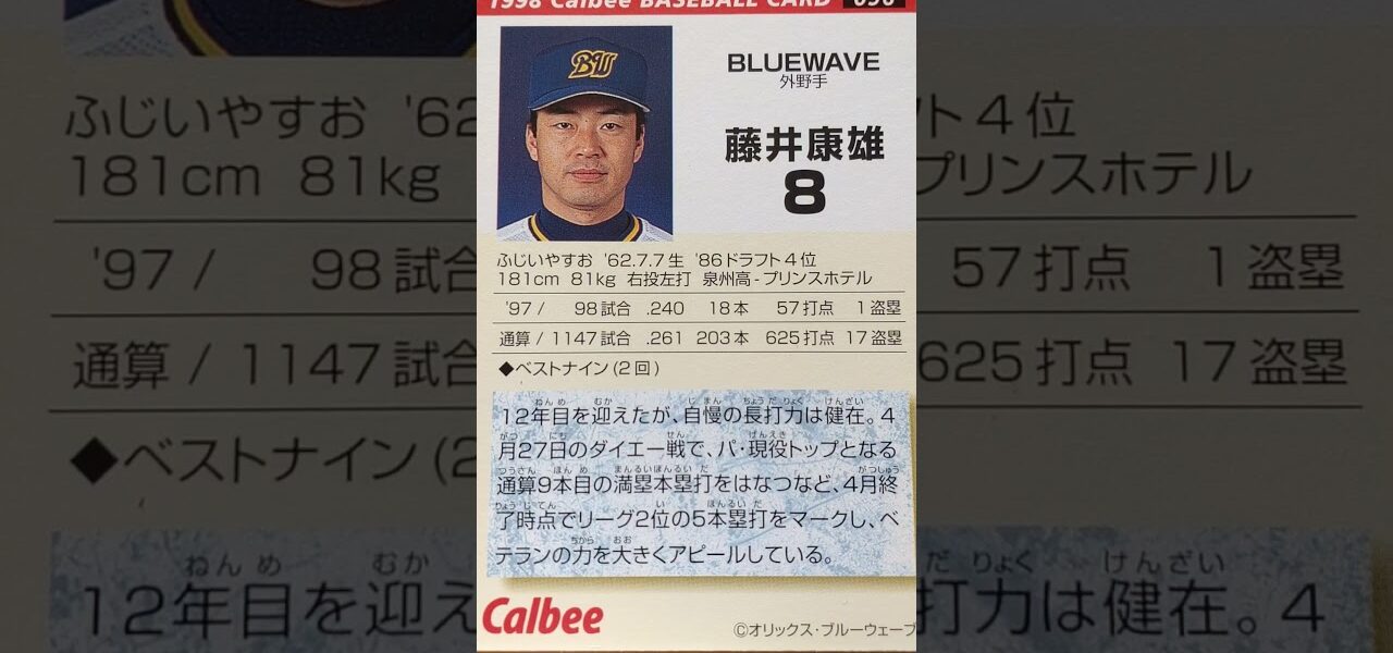 1998プロ野球チップス【藤井康雄(オリックスブルーウェーブ)】