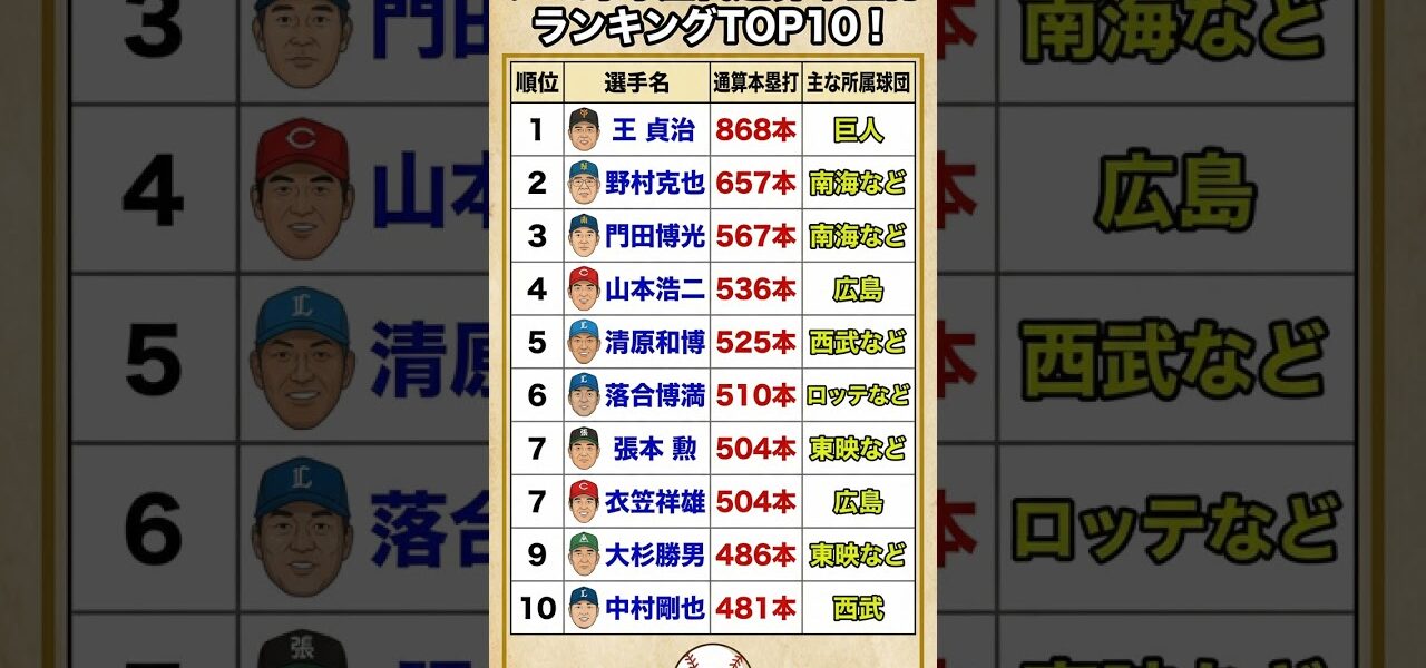 プロ野球歴代通算本塁打ランキングTOP10