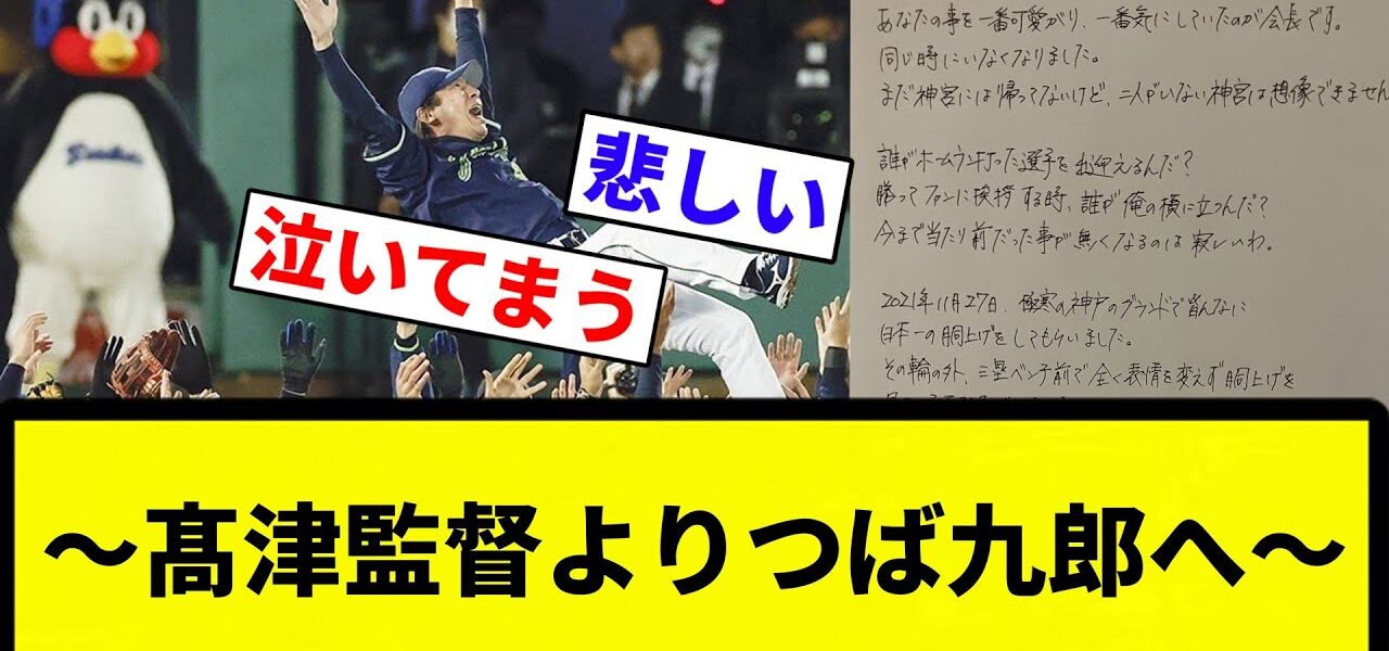 引用 〜髙津監督よりつば九郎へ〜