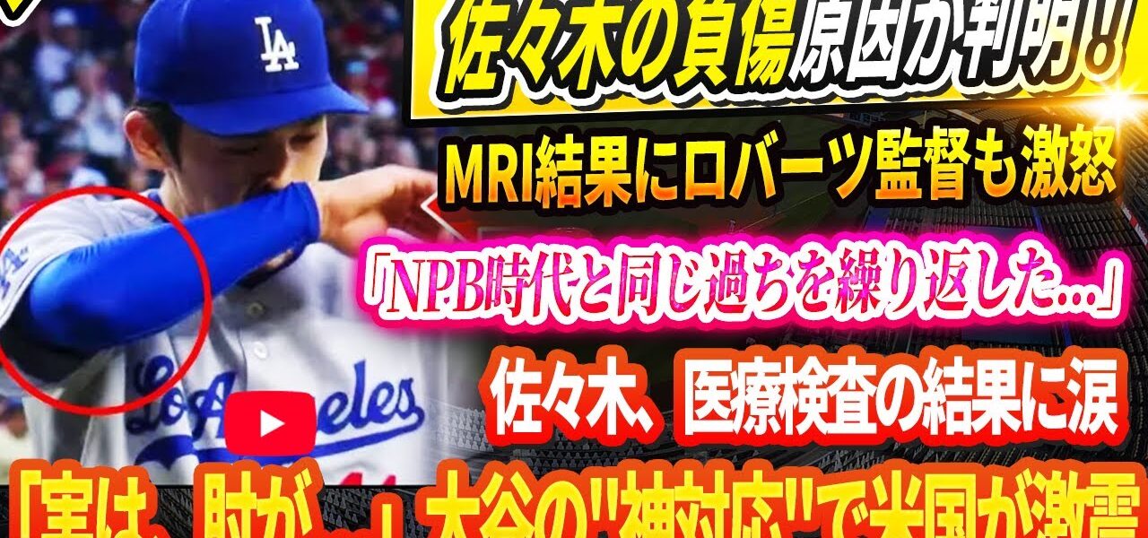 🔴🔴🔴【LIVE14日】佐々木の負傷原因が判明!MRI結果にロバーツ監督も激怒「NPB時代と同じ過ちを繰り返した…」佐々木、医療検査の結果に涙「実は、肘が…」!大谷の”神対応”でアメリカが激震!