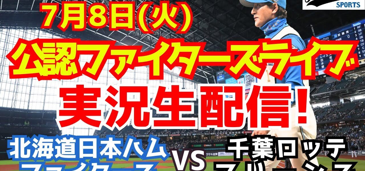 日ハム 日本ハムファイターズ 2025年7月8日 北海道日本ハムファイターズ対千葉ロッテマリーンズ戦を実況生配信でお送りします。