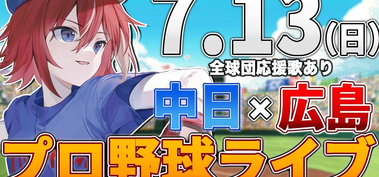 【プロ野球ライブ】広島東洋カープvs中日ドラゴンズのプロ野球観戦ライブ7/13(日)広島ファン、中日ファン歓迎!!!【プロ野球速報】【プロ野球一球速報】中日ドラゴンズ 中日ライブ 中日中継