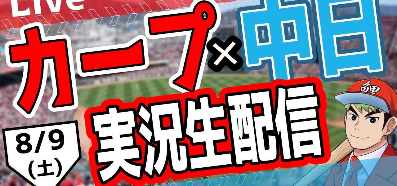 # カープ ライブ 8/9(土) 広島東洋カープ対中日ドラゴンズを実況生配信でお送りします。得点シーンもアーカイブでハイライトをチャプターにします!