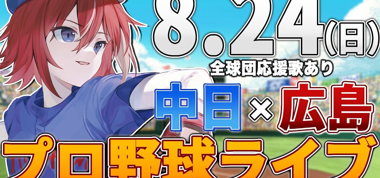 【プロ野球ライブ】広島東洋カープvs中日ドラゴンズのプロ野球観戦ライブ8/24(日)広島ファン、中日ファン歓迎!!!【プロ野球速報】【プロ野球一球速報】中日ドラゴンズ 中日ライブ 中日中継