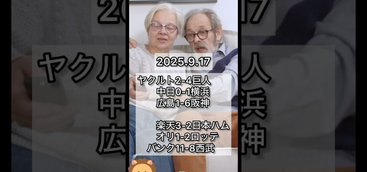 ホームページMV【2025.9.17 プロ野球】結果感想 MV 【2025.9.17 プロ野球】結果感想 管理人 投稿日: 2025年9月17日 #NPB #プロ野球 #読売ジャイアンツ #阪神タイガース #横浜DeNAベイスターズ #広島東洋カープ #東京ヤクルトスワローズ #中日ドラゴンズ #福岡ソフトバンクホークス #北海道日本ハムファイターズ #千葉ロッテマリーンズ #東北楽天ゴールデンイーグルス #オリックスバファローズ #埼玉西武ライオンズ 共有: Facebook で共有するにはクリックしてください (新しいウィンドウで開きます) Facebook クリックして X で共有 (新しいウィンドウで開きます) X いいね:いいね 読み込み中… 返信する コメントをキャンセルメールアドレスが公開されることはありません。 ※ が付いている欄は必須項目ですコメント ※ 名前 ※ メール ※ サイト 次回のコメントで使用するためブラウザーに自分の名前、メールアドレス、サイトを保存する。 管理人 すべての投稿を表示 投稿ナビゲーション 前の投稿【チーン】日ーンハム【プロ野球反応集】【2chスレ】【なんG】 次の投稿中日勝てないけどすごい!!【プロ野球】【球場別収容率】#プロ野球 こちらの記事はいかがですか? MV 来季出場機会を減らしそうな選手3選#プロ野球 管理人 2025年12月9日 MV 【プロ野球】オールスターきっかけにビシエド覚醒!! 管理人 2022年7月31日 MV 【超難問】プロ野球成績クイズ第59回#プロ野球 #野球ネタ #クイズ 管理人 2023年11月19日 MV 10月2日 プロ野球ニュース #171 🅽🅴🆆 🅵🆄🅻🅻 管理人 2023年10月3日