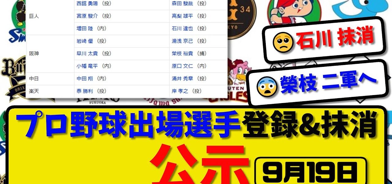 ホームページMV【公示】プロ野球 出場選手登録&抹消 公示9月19日発表|森田&高梨&石川&湯浅&榮枝&原口&涌井&岸ら抹消|西舘&宮原&増田&岩崎&小幡&中田&泰ら登録【最新・まとめ・反応集・なんJ・2ch】 MV 【公示】プロ野球 出場選手登録&抹消 公示9月19日発表|森田&高梨&石川&湯浅&榮枝&原口&涌井&岸ら抹消|西舘&宮原&増田&岩崎&小幡&中田&泰ら登録【最新・まとめ・反応集・なんJ・2ch】 管理人 投稿日: 2025年9月19日 #阪神タイガース #広島カープ #横浜DeNAベイスターズ #読売ジャイアンツ #ヤクルトスワローズ #中日ドラゴンズ #日本ハムファイターズ #福岡ソフトバンクホークス #東北楽天ゴールデンイーグルス #オリックスバファローズ #千葉ロッテマリーンズ #西武ライオンズ #プロ野球 #反応集 #なんJ 共有: Facebook で共有するにはクリックしてください (新しいウィンドウで開きます) Facebook クリックして X で共有 (新しいウィンドウで開きます) X いいね:いいね 読み込み中… 返信する コメントをキャンセルメールアドレスが公開されることはありません。 ※ が付いている欄は必須項目ですコメント ※ 名前 ※ メール ※ サイト 次回のコメントで使用するためブラウザーに自分の名前、メールアドレス、サイトを保存する。 管理人 すべての投稿を表示 投稿ナビゲーション 前の投稿反則打球を取られたかなり貴重シーン #野球 #プロ野球 次の投稿6年前なの早いわ #プロ野球 こちらの記事はいかがですか? MV 山本「それはあかんよ」一体何があったのか? #プロ野球 #野球 管理人 2025年7月7日 MV NPB通算安打ランキング #安打 #張本勲 #shorts #ランキング #野球 #プロ野球 管理人 2025年8月12日 MV 【プロ野球】解説者の言葉が許せない#プロ野球 #セリーグ #パリーグ #浜田雅功 管理人 2025年10月2日 MV 読売ジャイアンツ 女子プロ野球選手新入団 清水美佑 選手 管理人 2023年1月3日
