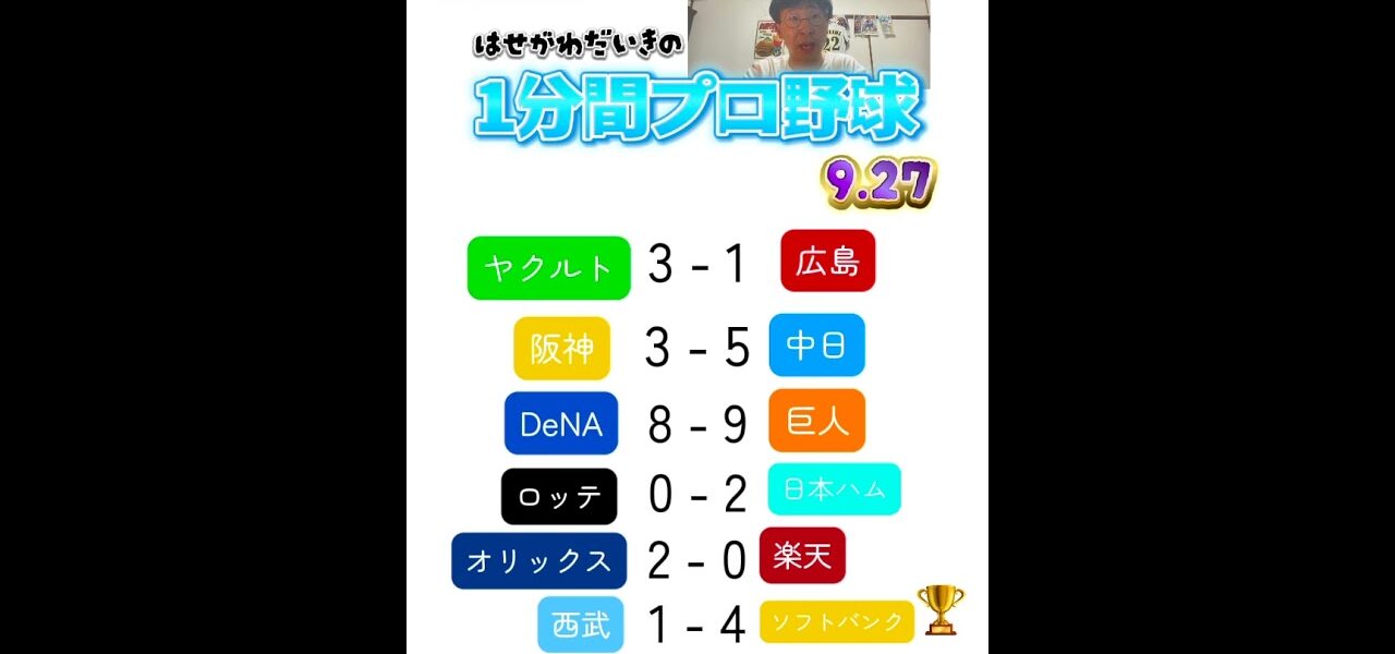 1分間プロ野球!【波瀾万丈、紆余曲折、最後に笑う鷹】ソフトバンク、有原投手の7回1失点の好投で、2年連続23回目のリーグ制覇!#1分間プロ野球#福岡ソフトバンクホークス#有原航平#小久保裕紀