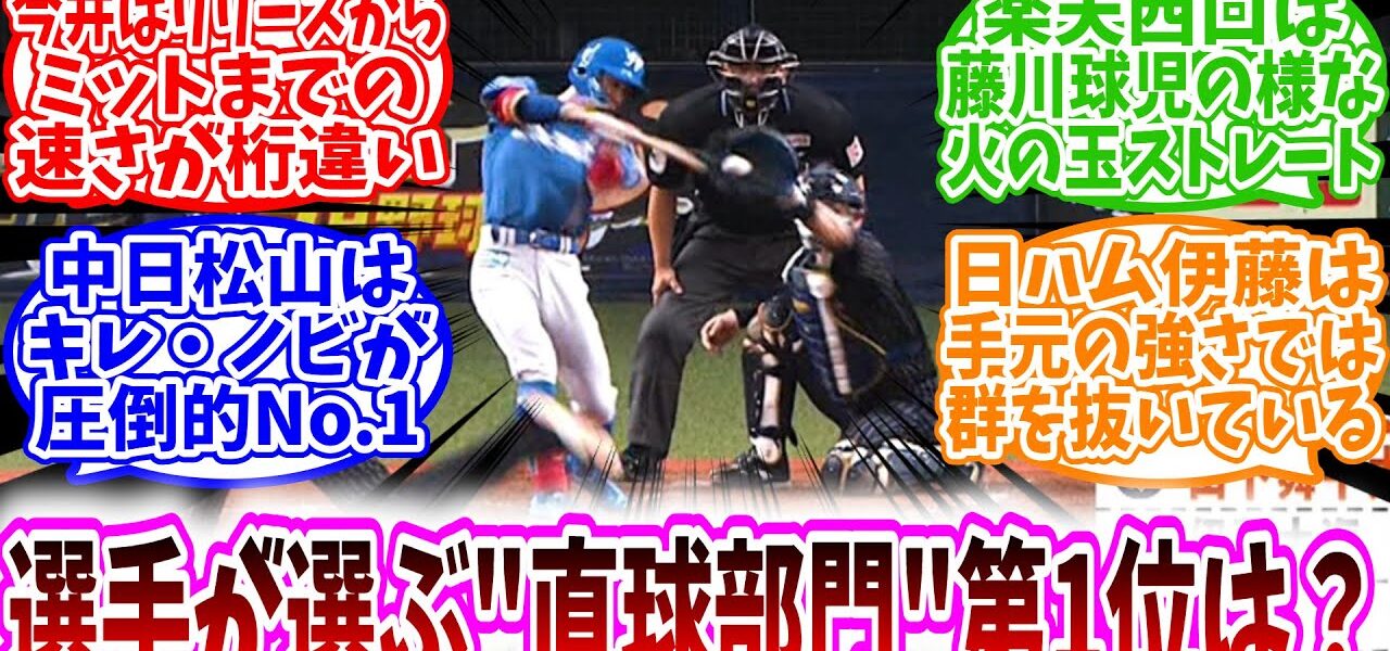 【速報】「プロ野球選手が選ぶ”直球部門”第1位は?」に対する、野球民の反応集/今井はリリースからミットまでの速さが桁違い/楽天西口は藤川球児の様な火の玉ストレート/中日松山はキレ・ノビが圧倒的No.1
