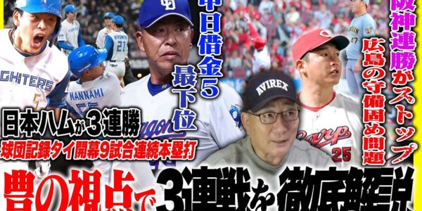 【プロ野球解説】日本ハム3連勝『ホームランが22本の異常打線』DeNA『大城の場面で坂本でも…』阪神が連勝がストップ「広島守備固めになってない…」中日岡林離脱で花田が台頭‼︎ロッテは高部を使うべき?
