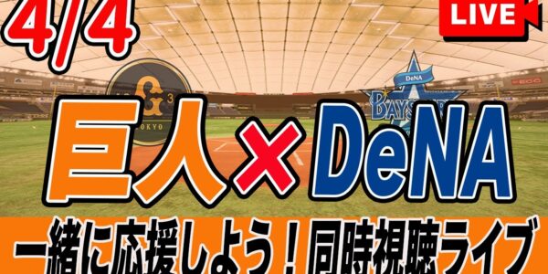 【巨人ライブ】4/4 読売ジャイアンツ VS DeNAベイスターズ を実況同時視聴ライブ配信! 巨人 プロ野球 公式戦 ライブ